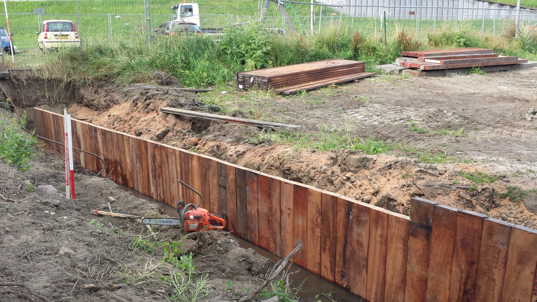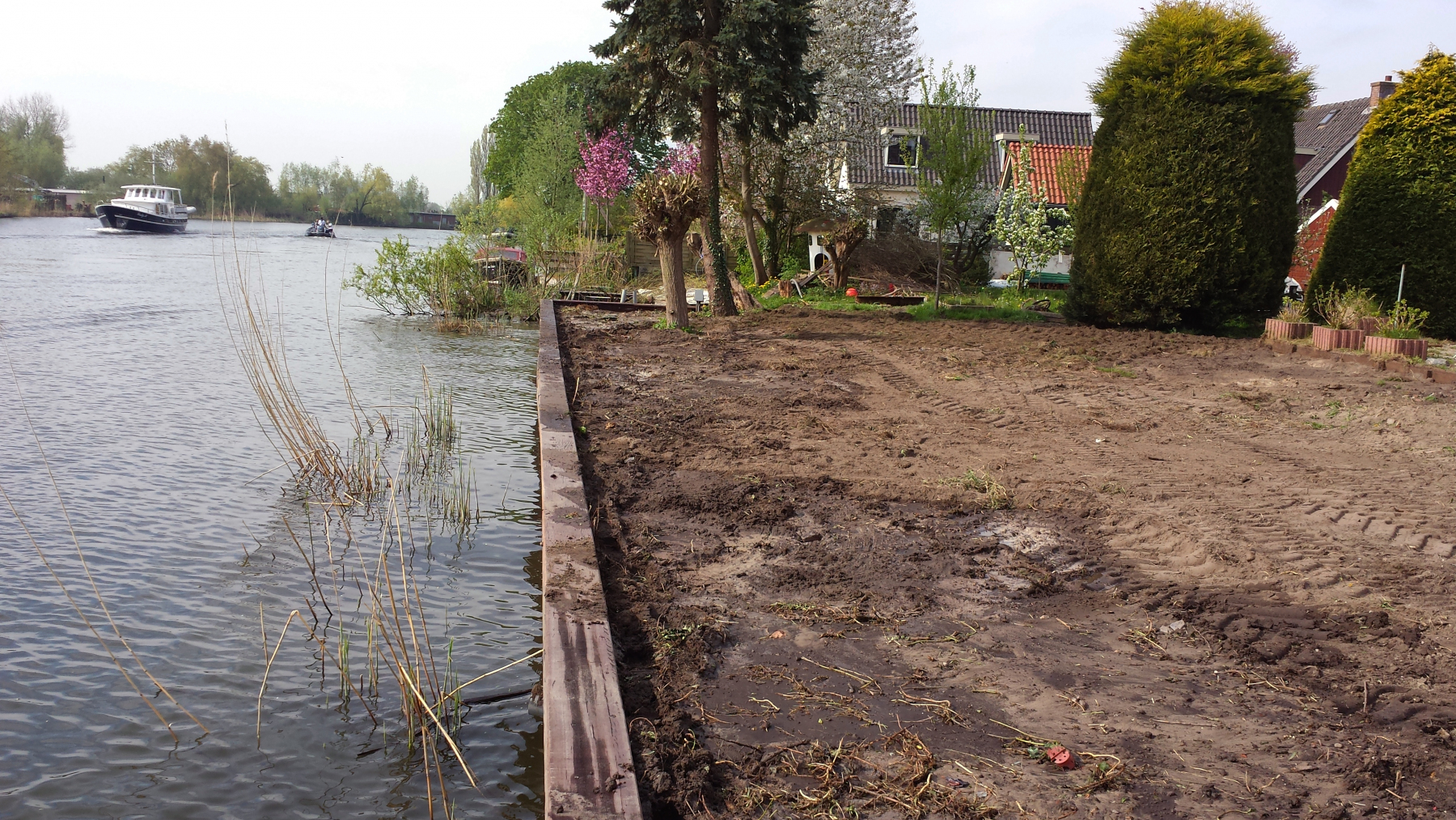 Een beschoeiing of oeverwalversteviging kan op verschillende manieren worden aangelegd. Een oever die geschikt moet zijn als faunapassage vergt een andere aanpak dan een damwand die dient als bescherming van de oever. Het beoogde uiterlijk en gebruikersdoel bepalen de keuze van het materiaal. De varianten die het meest voorkomen zijn beschoeiingen gemaakt van palen, damwand of schotten met palen. Veelal wordt gebruik gemaakt van hardhout. Voor de delen van de beschoeiing die altijd onder de waterlijn blijven kan ook gebruik gemaakt worden van naaldhout. Bij een woonark is een goede beschoeiing erg belangrijk voor het behoud van uw tuin. Daarnaast zijn betrouwbare meerpalen of dukdalven essentieel om uw ark goed vast te leggen. Het kan nodig zijn dat uw ark verlegd moet worden om het werk aan uw beschoeiing en/of dukdalven uit te voeren. Door gebruik te maken van koppelpontons blijft uw ark bereikbaar en kunt u gewoon in uw ark verblijven gedurende de werkzaamheden. Vul het contactformulier in als u meer informatie wilt over een beschoeiing op maat.